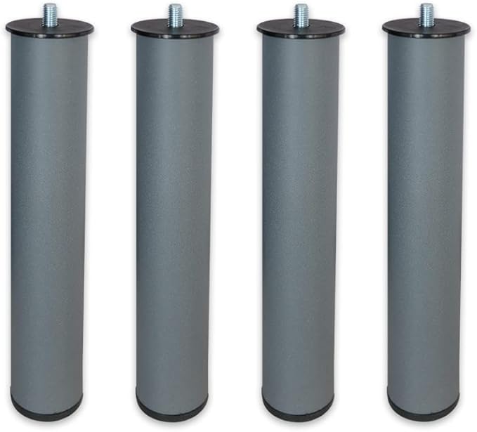 Juego de 4 patas metálicas de acero pintado gris mate, 27 cm, sistema antirruido y rosca M10.
