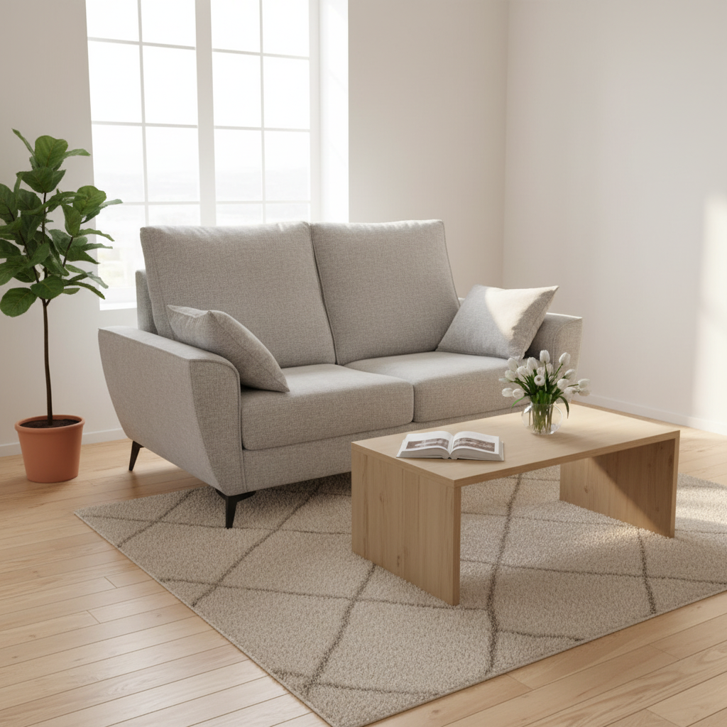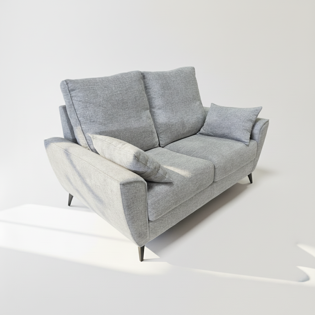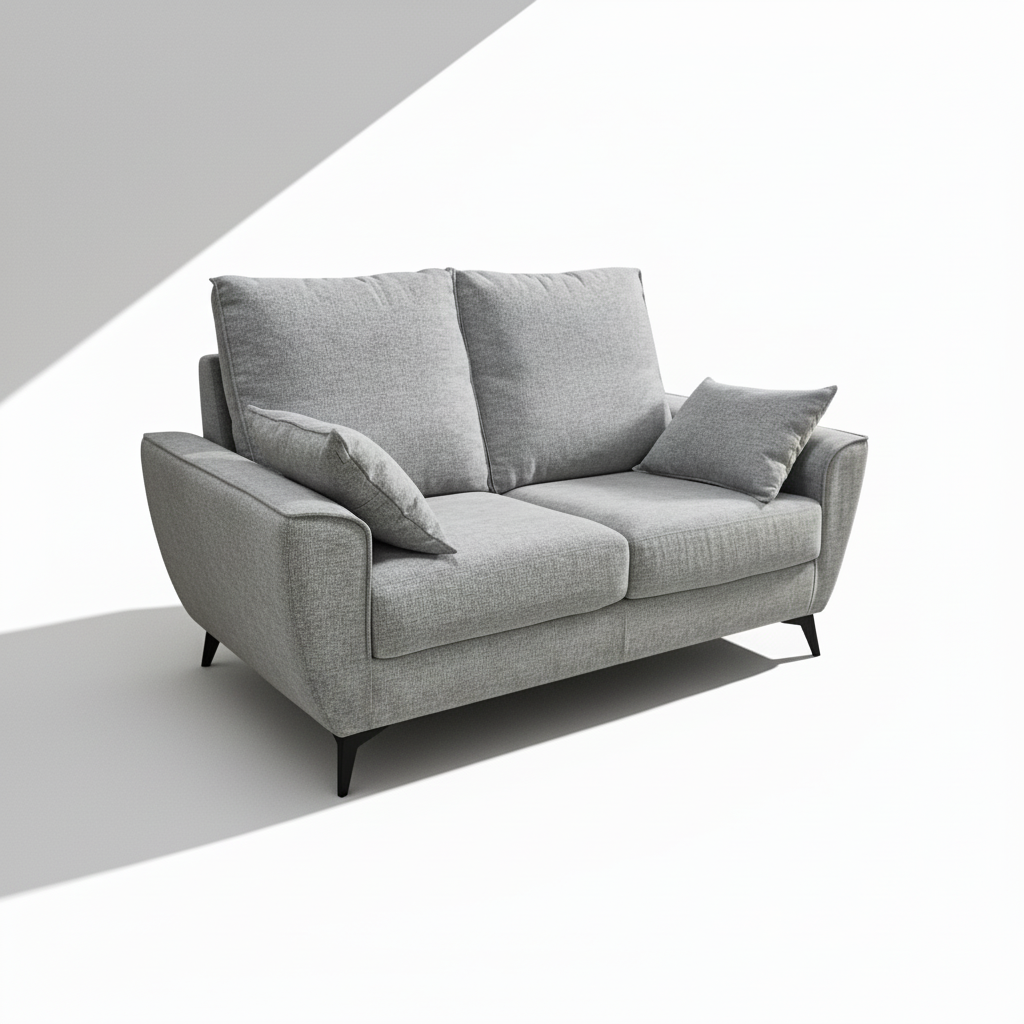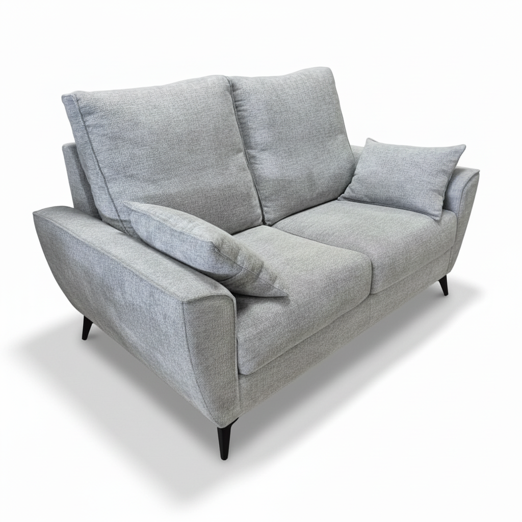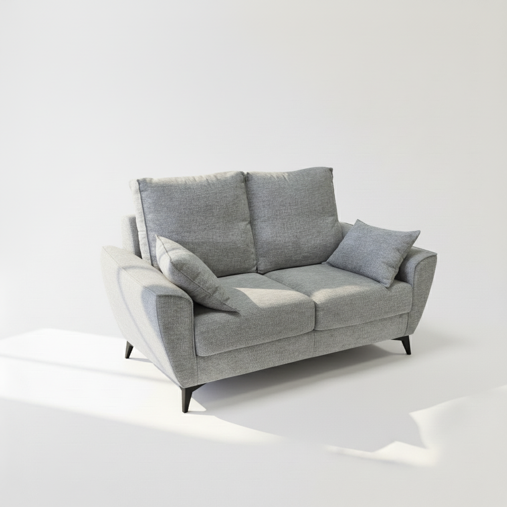 El Sofá Byron en tela gris combina elegancia, confort y practicidad en un diseño moderno y funcional. Con unas medidas de 160 cm de ancho, 90 cm de fondo y 100 cm de alto, se adapta fácilmente a salones pequeños o medianos, ofreciendo un espacio acogedor para dos personas.
