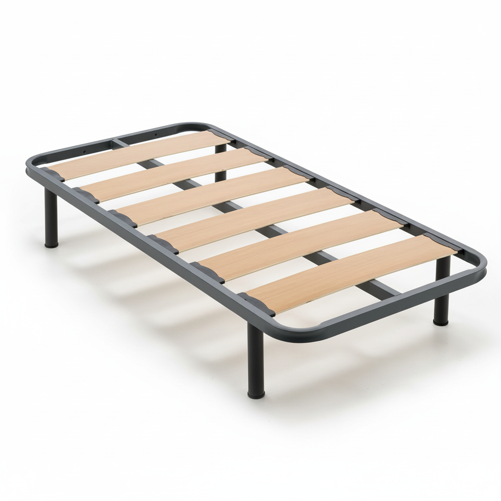 Somier metálico con láminas anchas de madera ( patas no incluidas), resistente, estable y duradero. Ideal para todo tipo de colchones. Su estructura reforzada garantiza un soporte firme y una excelente ventilación. Juego de patas aparte. Para otras medidas, consultar con tienda.