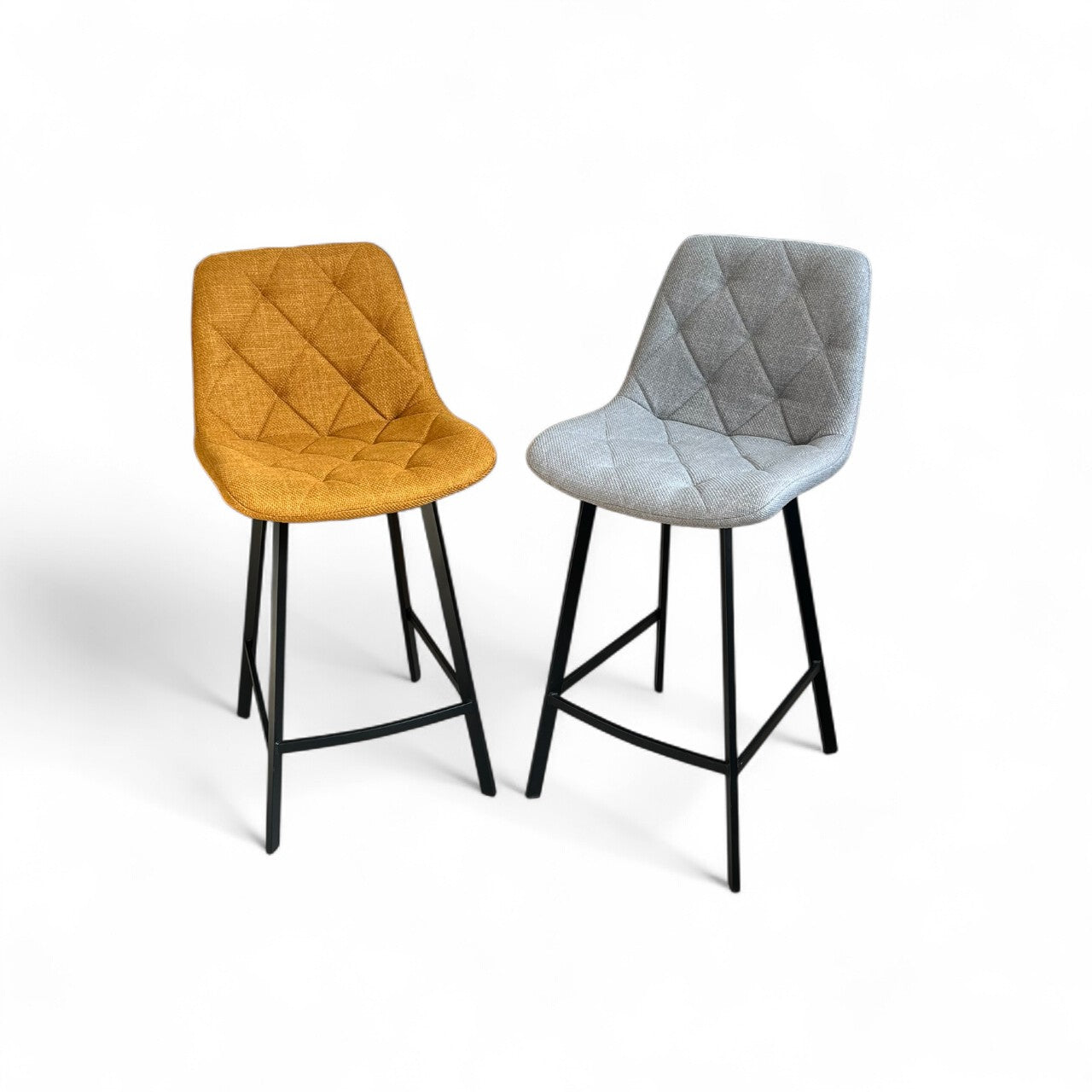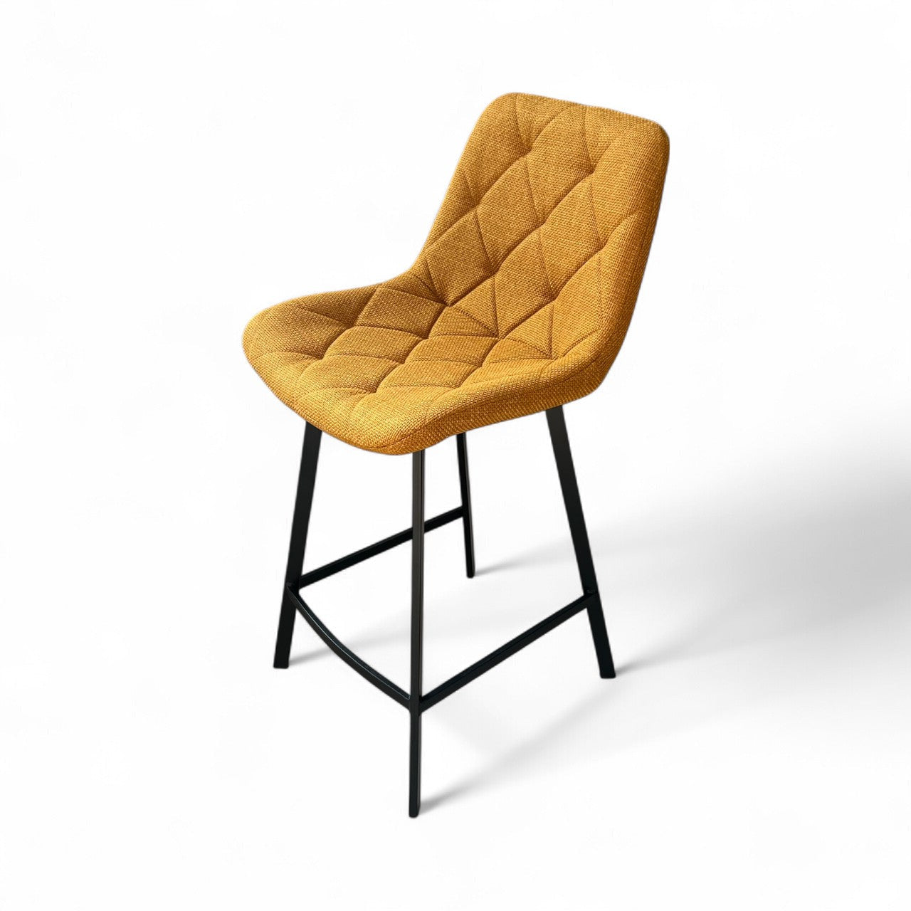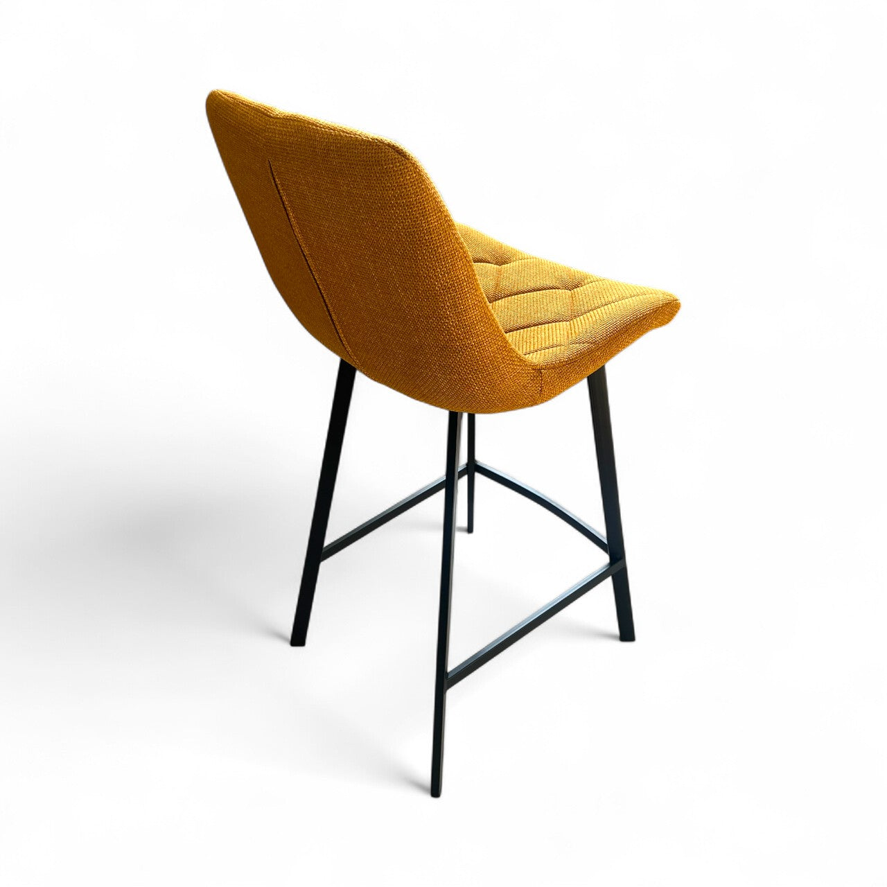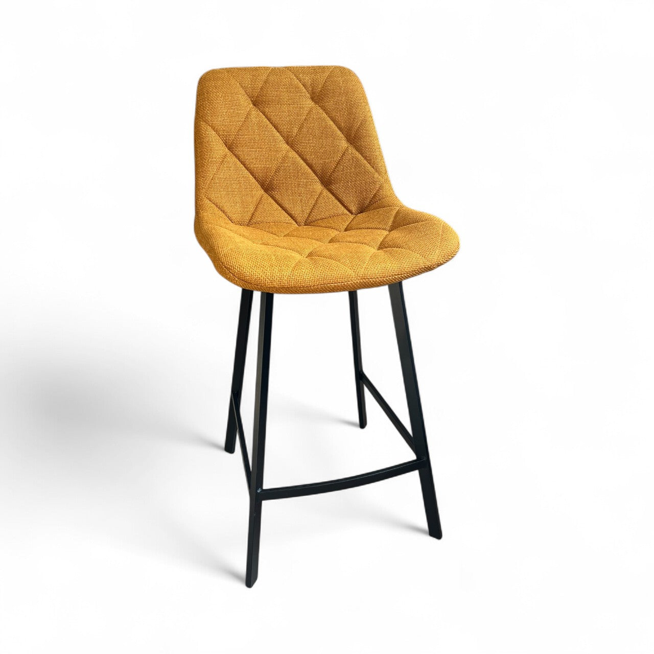 El Taburete Helen combina diseño moderno, comodidad y resistencia. Su tapizado en tela mostaza con acolchado geométrico y patas metálicas negras lo convierten en la pieza perfecta para cocinas, comedores o bares con estilo.